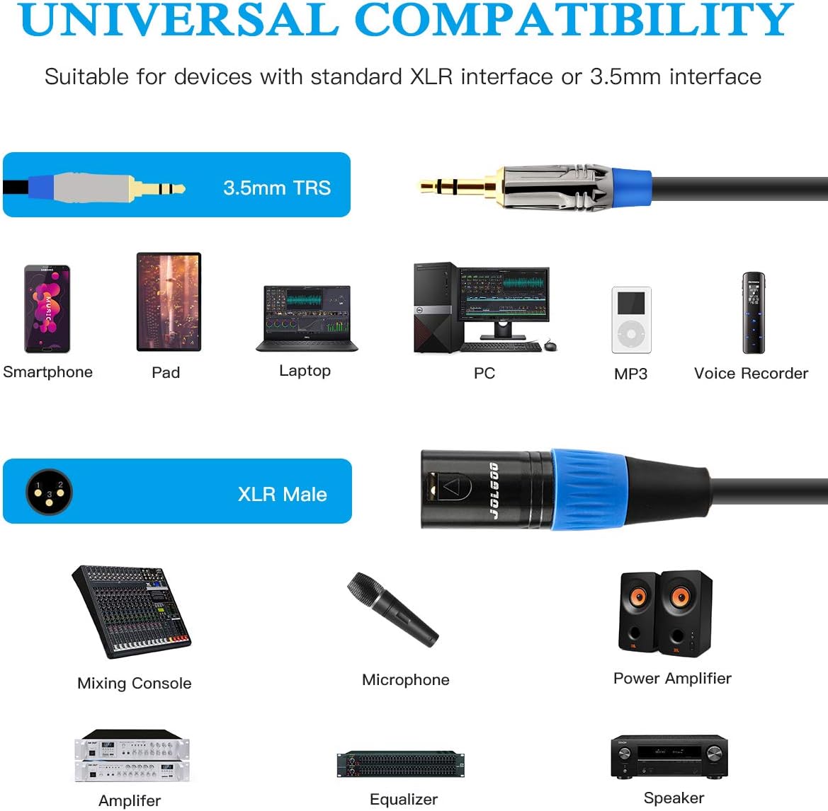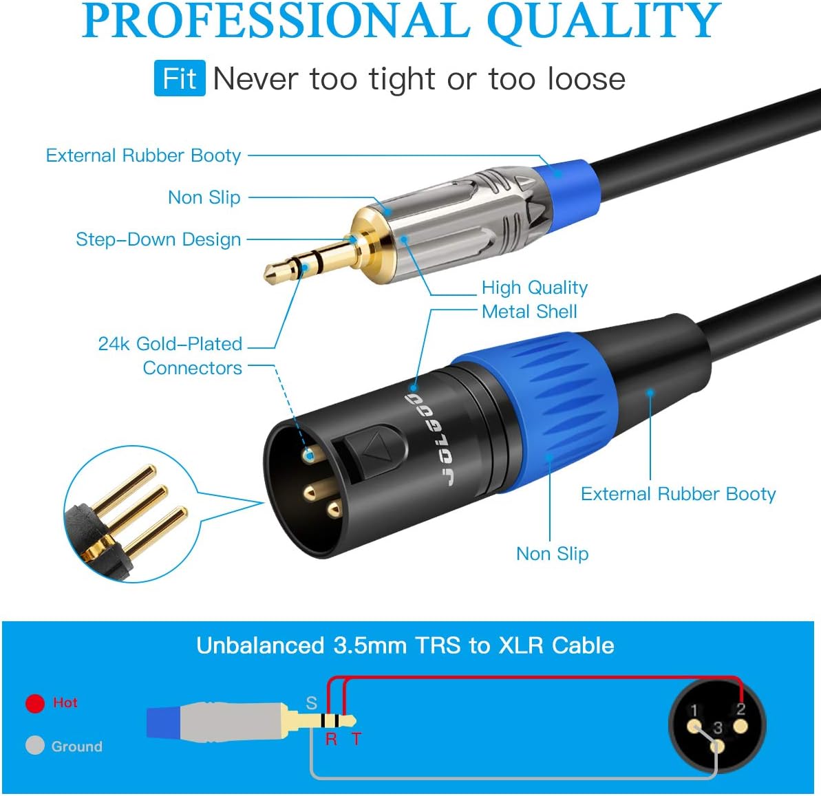 • PRO GRADE XLR CABLE : Professional Series XLR Plugs, designed to connect an audio device with a mini stereo phone output to professional audio gear with XLR inputs. It is ideal for connecting a portable media player, laptop, or similar device to a mixing console. Give you the perfect sound quality!