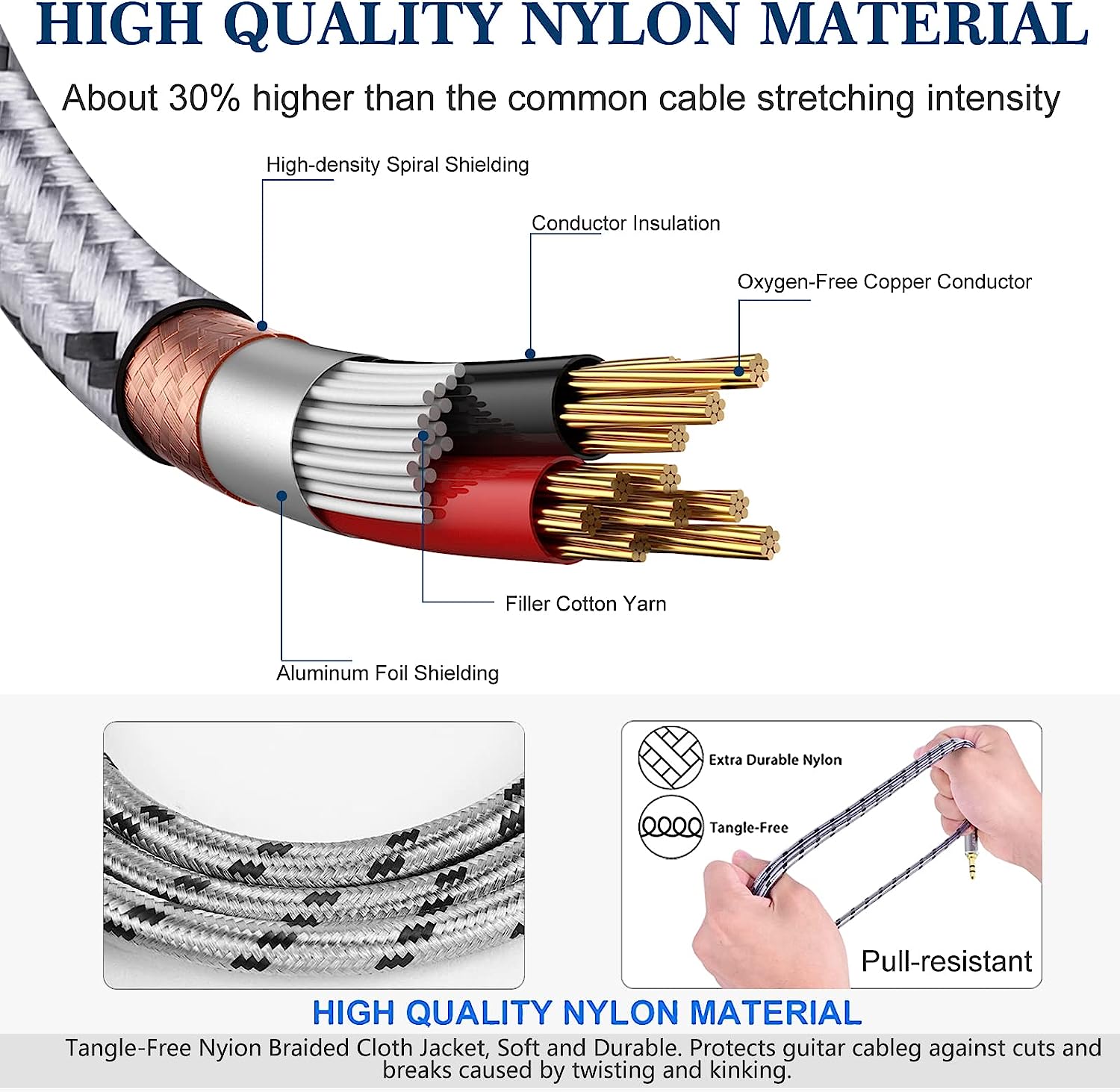 • EXCELLENT SOUND : 20 AWG 4N Oxygen Free Copper with shielding, Foil shielding and metal braid shield eliminate interference, deliver pristine sound, noise shielding, No hum, no noise, crystal clear music. High quality noise free performance.