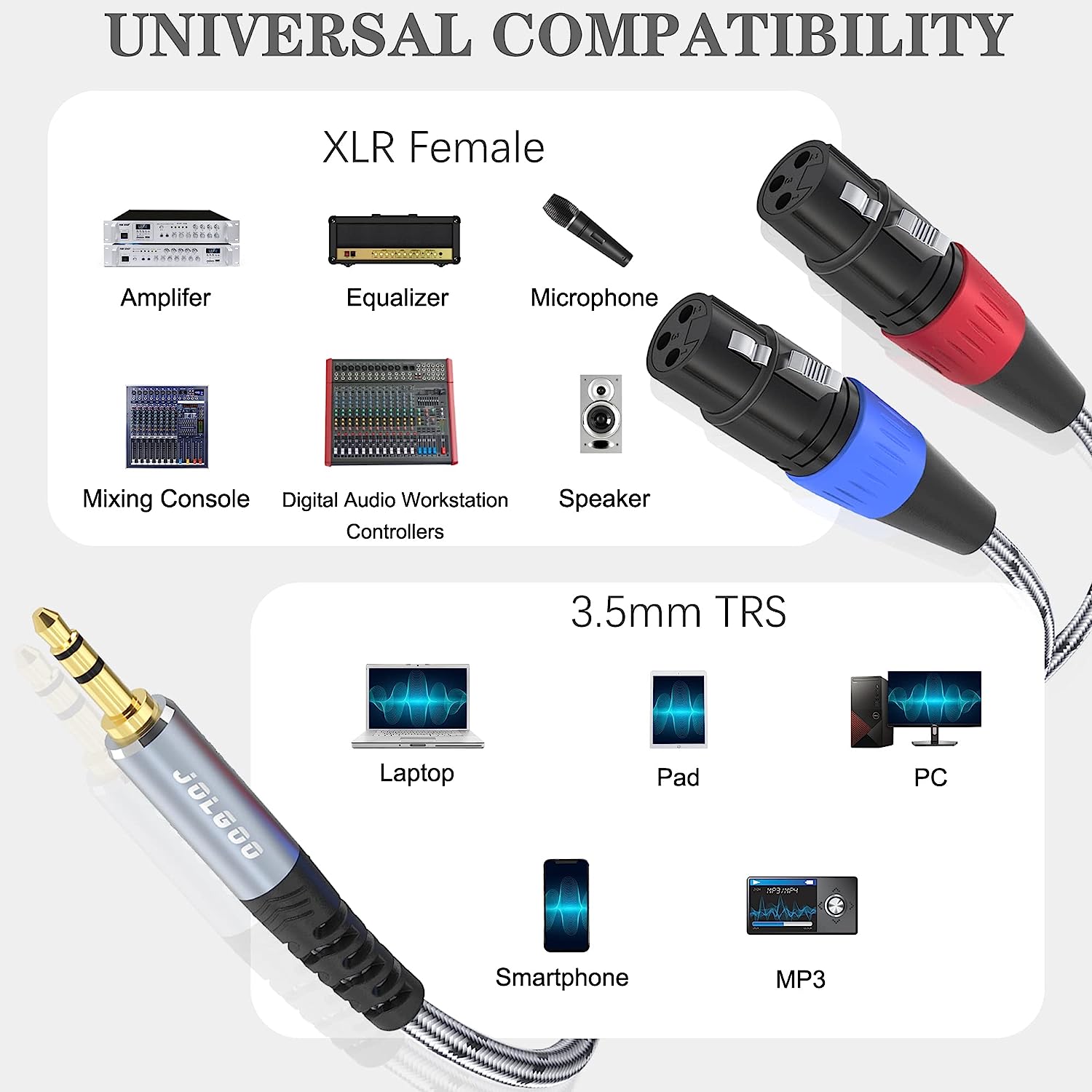 3.5 mm TRS to Dual XLR Male Pro Stereo Breakout Cable, 1/8" TRS Stereo to 2 XLR Male Y Splitter Patch Microphone Cable, 10 Feet - JOLGOO