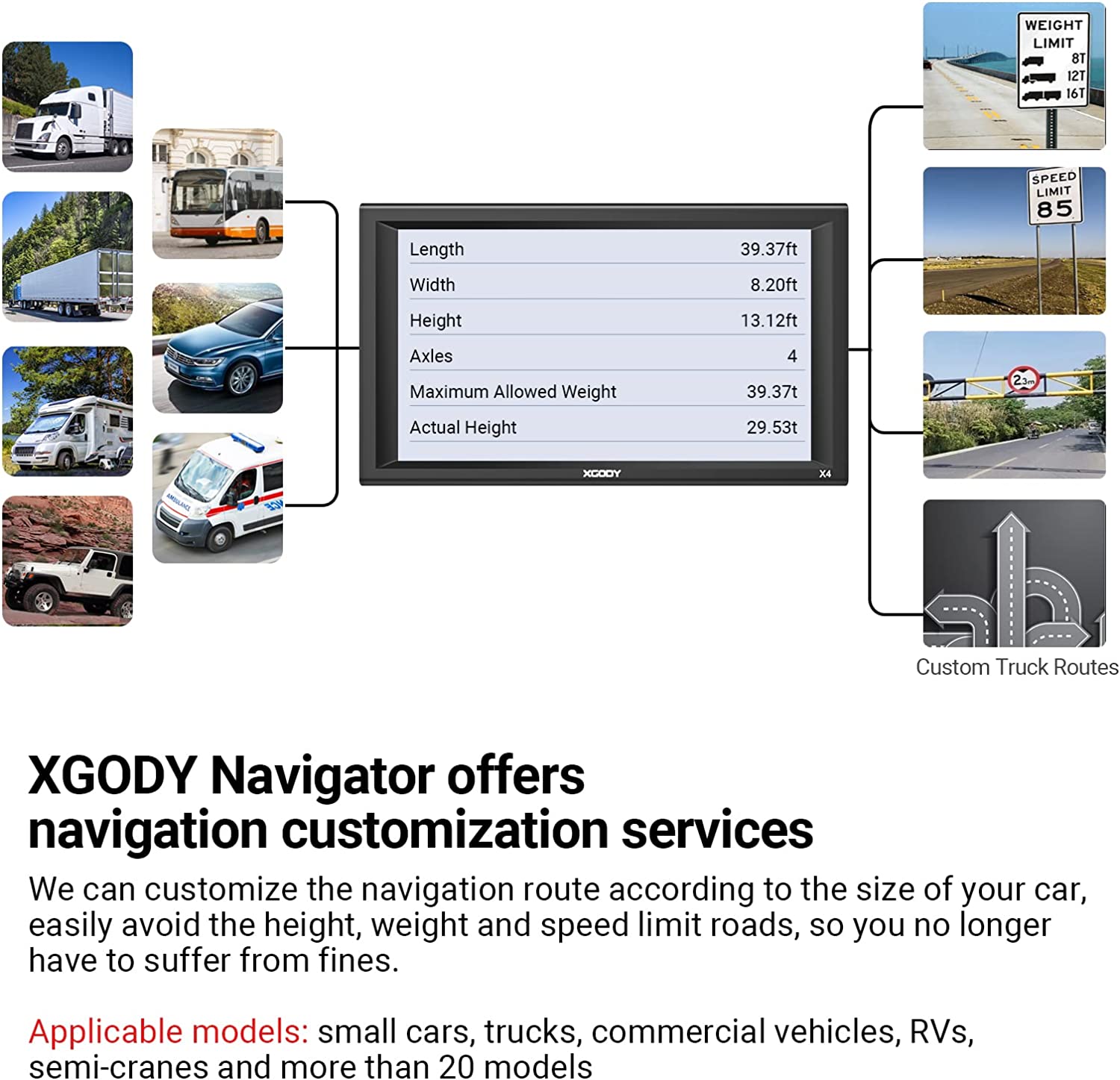 • 【Advanced Lane Guidance】 : XGODY Trucking GPS never miss your exit or turn with Advanced Lane Guidance. It shows you exactly which lane to take before you approach an exit, turn or difficult intersection—so you can stay on the right path.