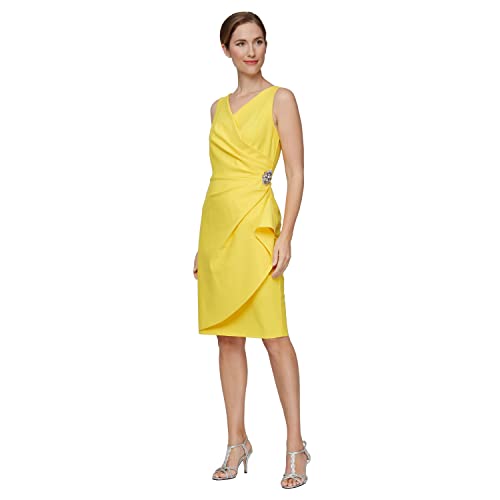 Alex Evenings Women's Slimming Short Ruched Dress with Ruffle (Petite and Regular), Canary, 2