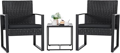 Flamaker 3 Pieces Patio Set Outdoor Wicker Furniture Sets Modern Rattan Chair Conversation Sets with Coffee Table for Yard and Bistro (Black)
