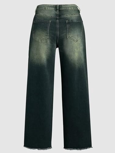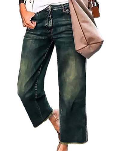 Flamingals Straight Leg Jeans for Women 2024 Casual Raw Hem Mid Waisted Pants Blue L