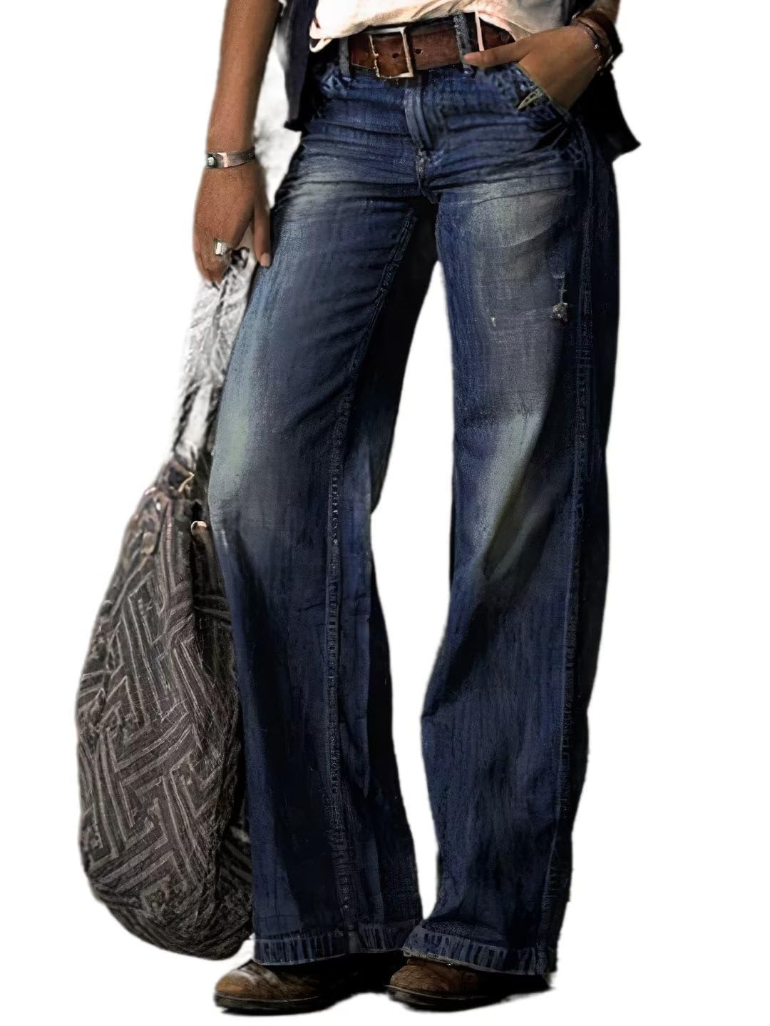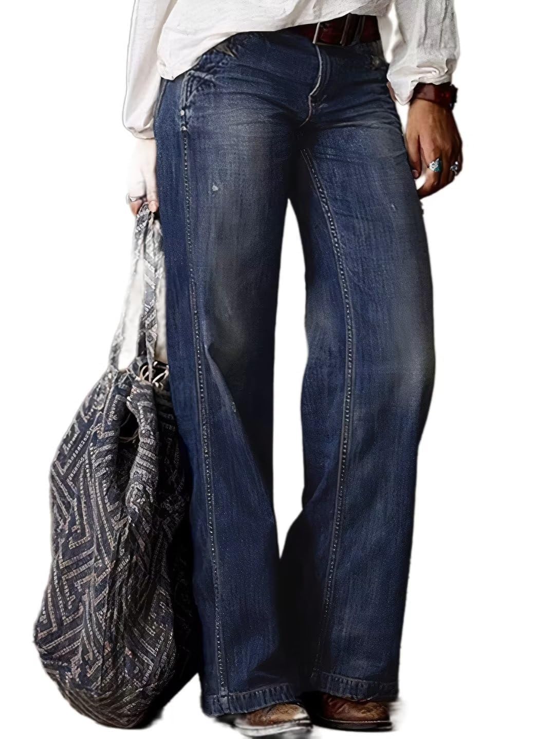 • Features: Wide leg, straight leg, baggy, ripped, boyfriend. Button and zipper closure, multiple pockets for convenience, stylish ripped design, high stretch for comfortable wear, mid waist and straight leg cut for flattering fit