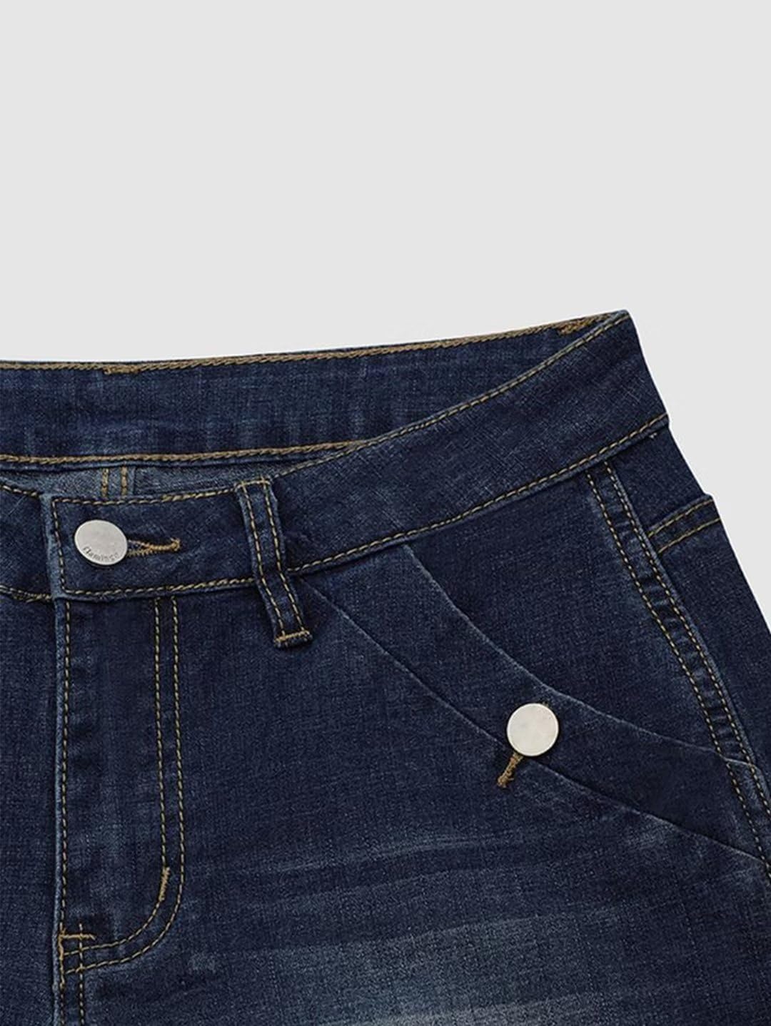 Flamingals Straight Leg Jeans for Women Ripped Raw Hem Mid Waisted Bootcut Jeans Without Belts Dark Blue M