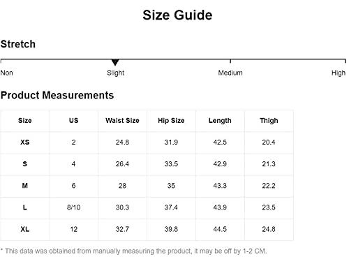 Details: Size Chart: X-Small:Waist Size:24.4", Hip Size:30.3", Length:41.3", Thigh:19"/ Small:Waist Size:26", Hip Size:31.9", Length:41.7", Thigh:19.9"/ Medium:Waist Size:27.6", Hip Size:33.5", Length:42.1", Thigh:20.7"/ Large:Waist Size:29.9", Hip Size:35.8", Length:42.7", Thigh:22"/ X-Large:Waist Size:32.3", Hip Size:38.2", Length:43.3", Thigh:23.3"/