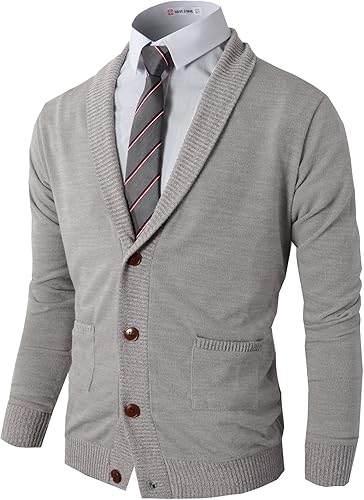 H2H Mens Casual Comfortable Fit Cardigan Sweater Shawl Collar Soft Fabric