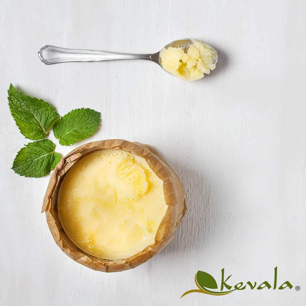 Golden and pure, ghee has been considered for ages in India as a Mystic food that sustains the body and purifies the mind. Bring a piece of India’s ancient wisdom to your home by adding ghee to your pantry and favorite recipes. A delicious and creamy golden spread, Kevala ghee has a warm and rich nutty taste. With an array of health benefits, clarified butter is high in antioxidants and has a high smoke point, making it one of the best oils for baking, sautéing, and deep-frying. Kevala ghee contains no Lactose or casein, making it shelf stable while preserving the naturally present linoleic acid (CLA) and vitamins A, D, and K. Gluten free · lactose free · casein free refrigeration is not required. Solidifies below 76ºF (24ºC). store in a cool dry place.