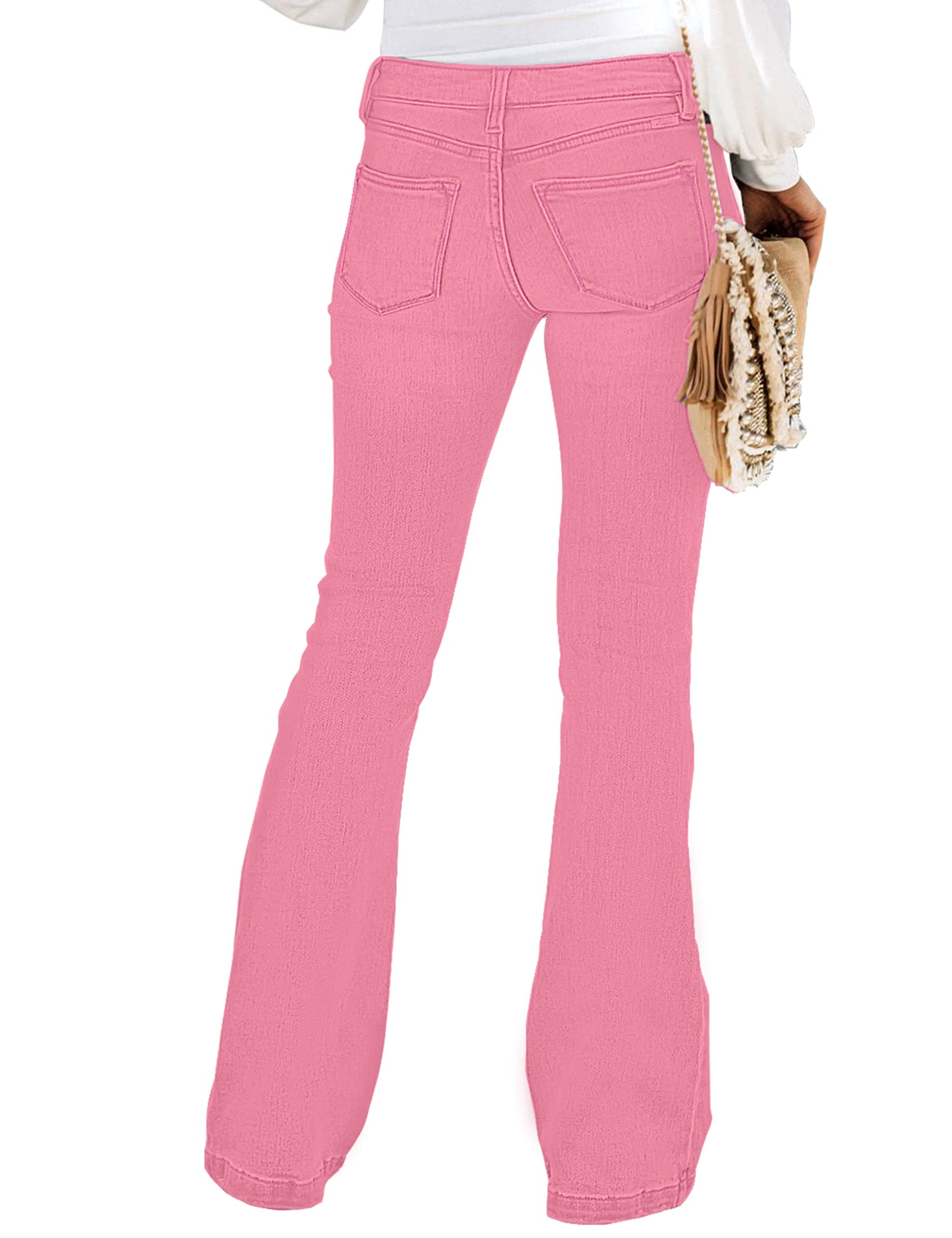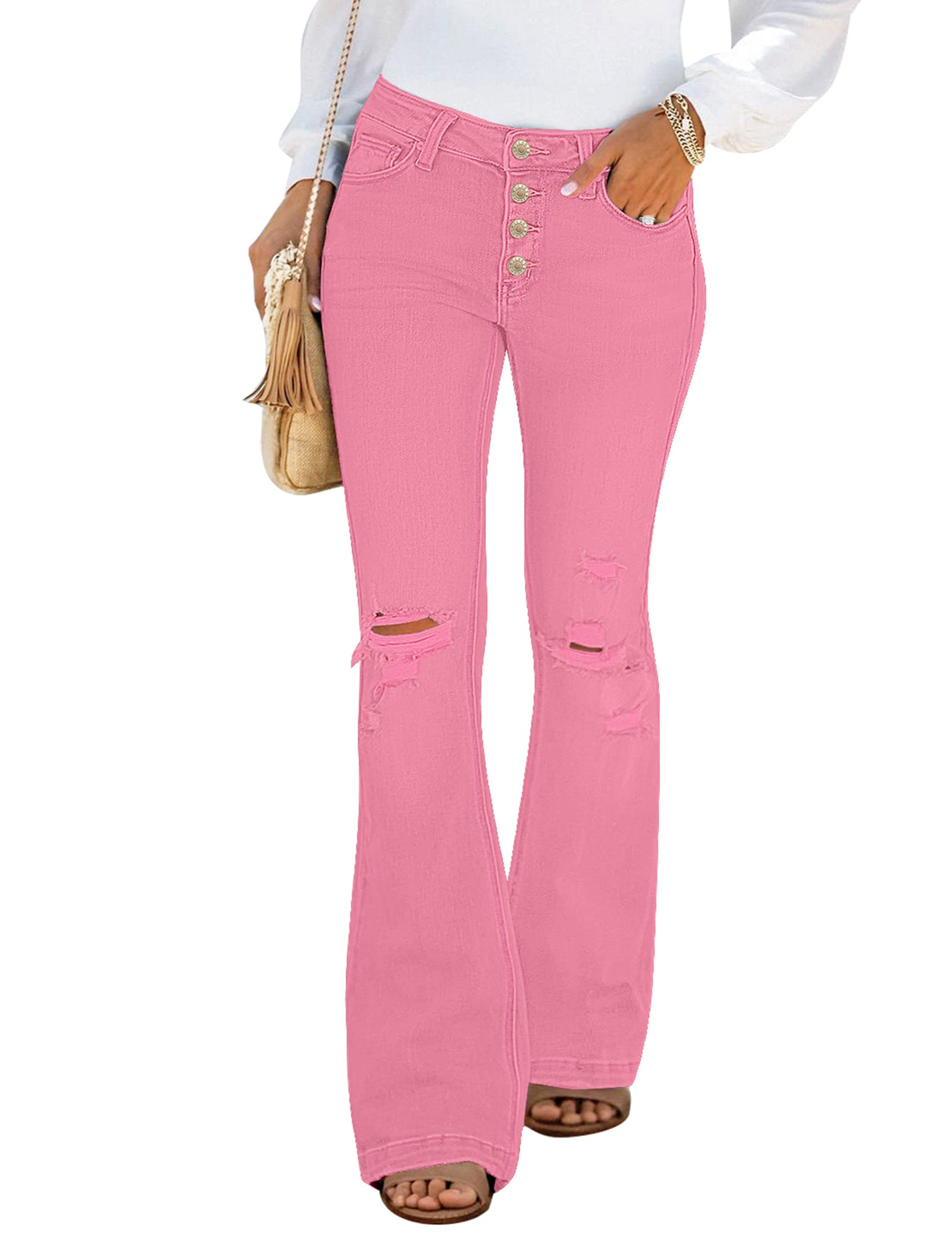 luvamia Women's Ripped Flare Bell Bottom Jeans Pants Retro Wide Leg Denim Pants Pink Jeans for Women Pink Flare Jeans Hot Pink Size Large Size 12 14