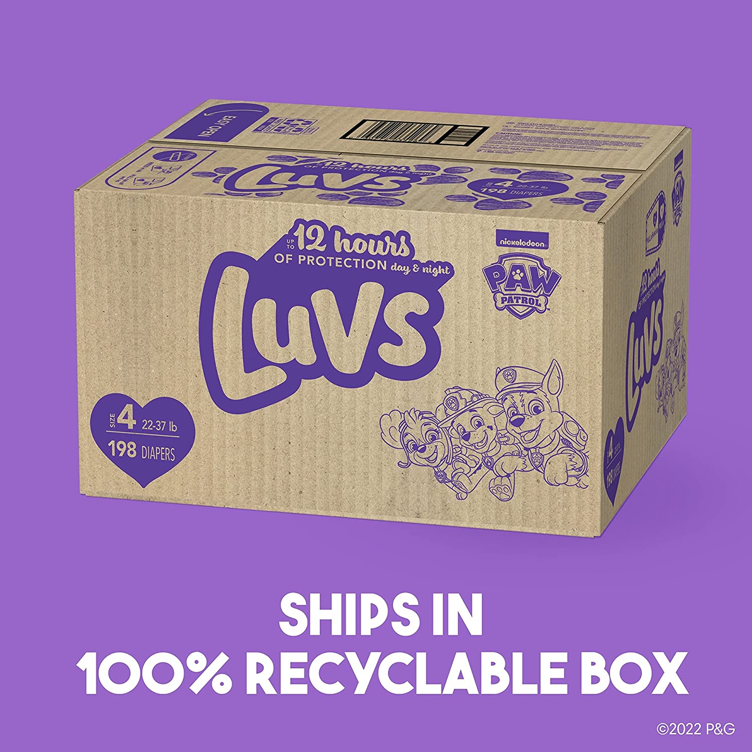 No job is too big, no pup is too small! Luvs diapers with new Paw Patrol designs have your back—and their butts. Luvs now has up to 12 hours of protection, day and night. Like Chase and Marshall would say, our highly trained paws are at your service. And diaper leaks? We’re on the case with nonstop leak protection. Luvs Triple Leakguards absorb quickly to help stop diaper leaks before they happen. But our leak protection doesn’t stop there. Secure cuffs and stretchy sides keep leaks locked in where they happen the most. Forget about cheap, leaky diapers and spend more time enjoying this ride known as parenting. With Luvs you know when they go, thanks to a wetness indicator that turns blue on contact with wetness. You care what your baby wears, so Luvs diapers are 100% hypoallergenic, made free of parabens and free of latex* (*natural rubber). When it comes to the ultimate diaper protection, these paws uphold the laws. Our diapers are so good, you don’t need this, but Luvs does offer a money-back guarantee. If you aren’t fully loving your Luvs diapers, we will gladly send you a refund. See luvsdiapers.com for terms and conditions.