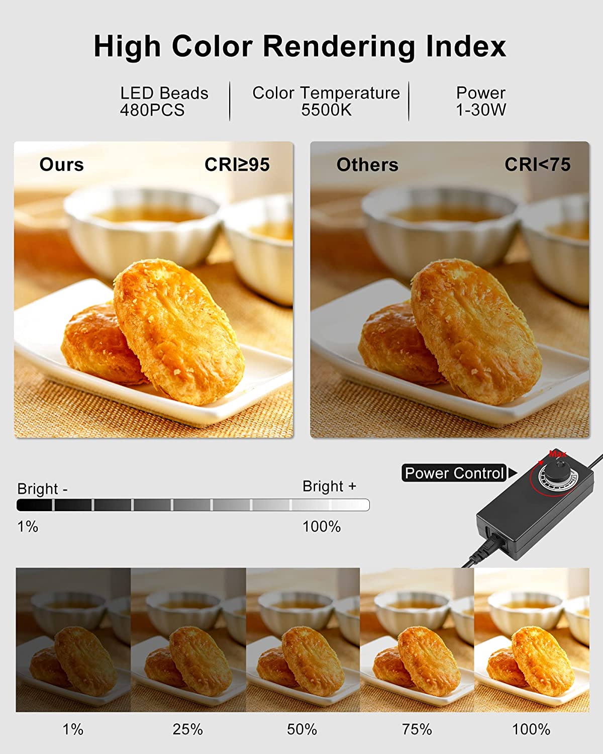 • 【CRI>95】This photo lighting studio kit Adopt CRI95 color temperature ring light board, built-in stone grain fabric, good light gathering effect.