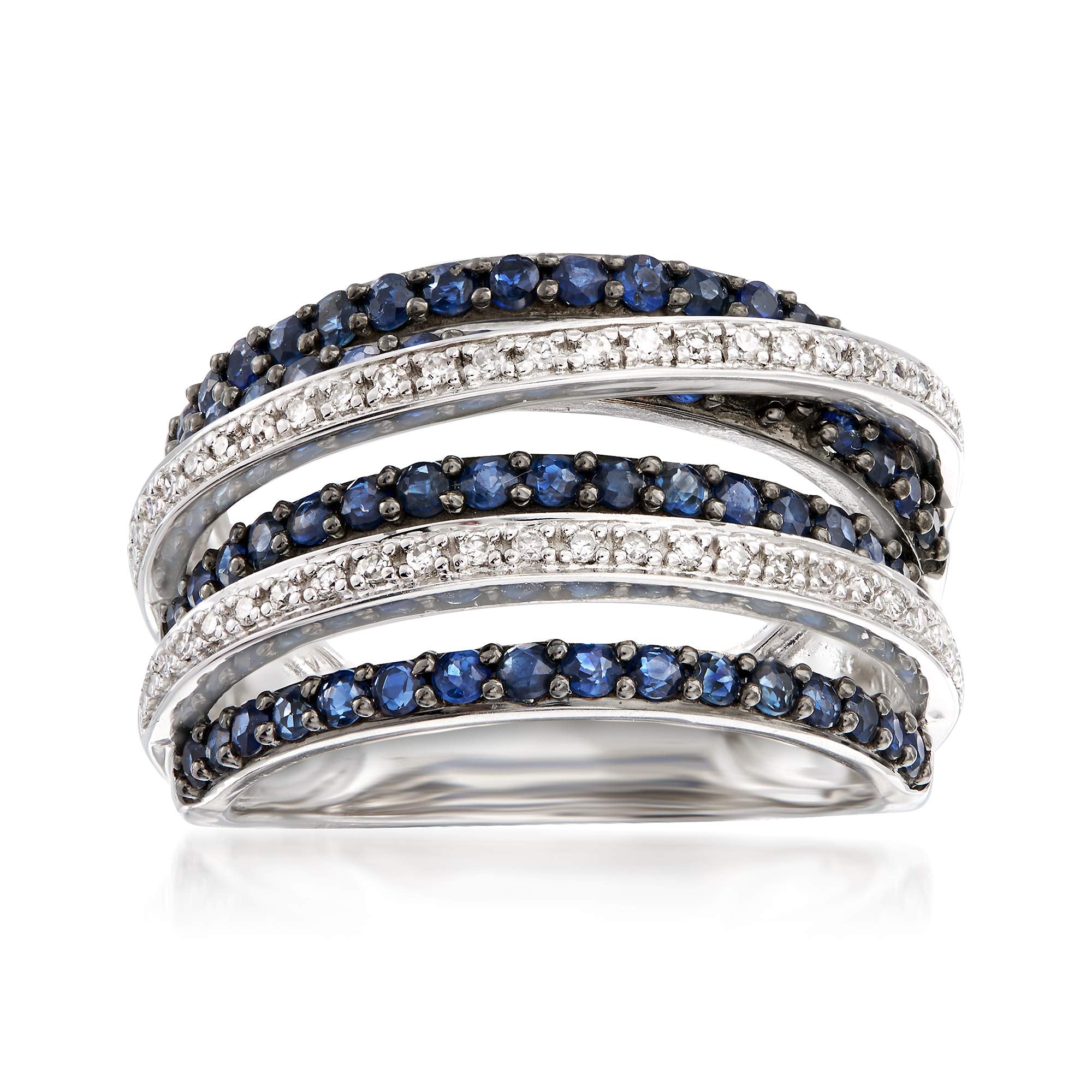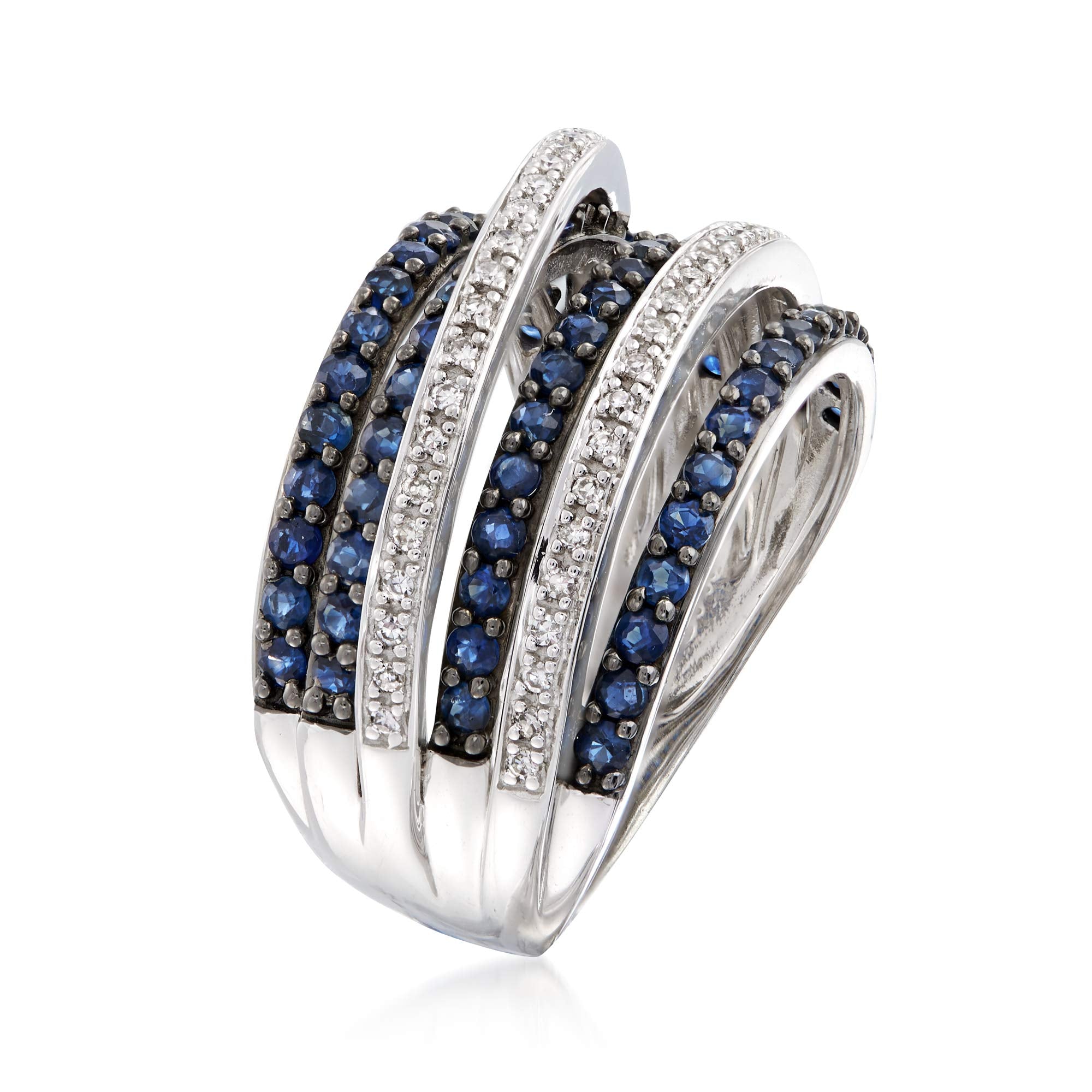 Details: Ross-Simons is the authority on luxury classics. It's a two-way street: designers and fashionistas can't get enough of the statement-making "highway" style ring. This beauty features 1.00 ct. t.w. sapphire and .15 ct. t.w. diamond-kissed criss-crossed bands. Sterling silver ring.