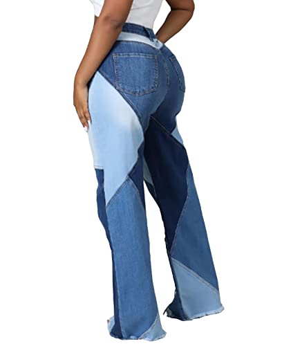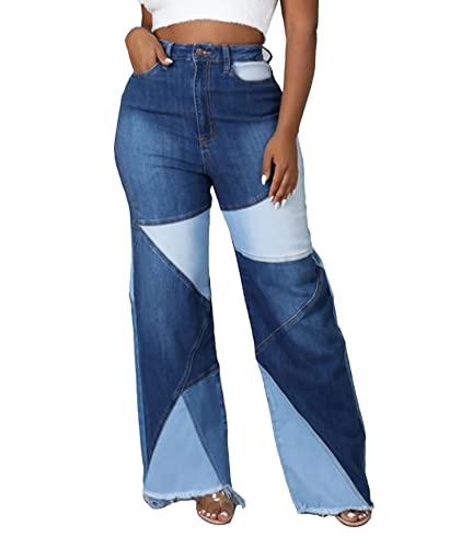 • ★☆Features☆★ Fashion Denim Jeans,Twill Patchwork Design,Color Block,Baggy Loose Jeans, Wide Straight Leg,Frayed Edges,Irregular Bottom Cut ,Hippie Long Trousers,Club Streetwear.Cool and Punk Style