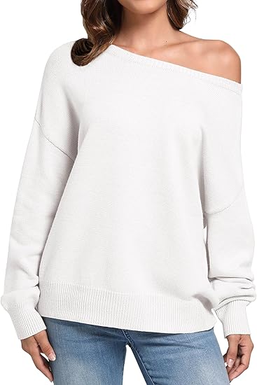 Ugerlov Women's Off Shoulder Sweater Casual Long Sleeve Oversized Sweaters 2024 Fall Pullover Knit Jumper