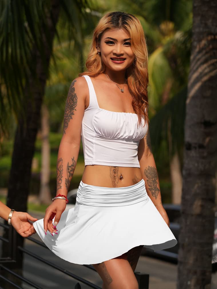 YMDUCH Women's Summer Cute Elastic Waist Ruched Ruffle Stretchy Mini Short Skirts White