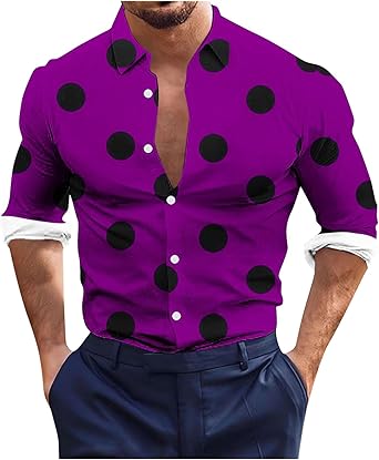 Long Sleeve Button Down Shirts for Men Polka Dot Print Shirt Casual Men's Regular Fit Blouse Lapel Collar Novelty Tops