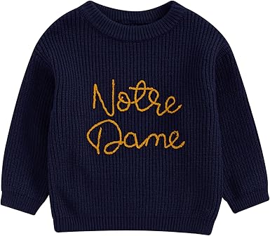Baby Boy Girl Football Outfit Toddler Notre Dame Sweater Rugby Cable Knit Sweatshirt Knitwear Fall Pullover Top