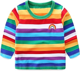 Boys Rainbow Striped Shirt Cotton Long Sleeve T-Shirts