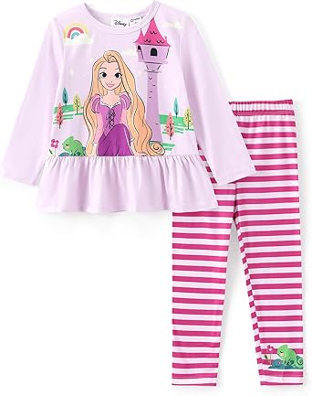 Disney Princess Toddler Girl Outfit Long Sleeve T-Shirt Dress and Striped Leggings Fall Casual Girls Clothing Sets