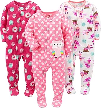 Simple Joys by Carter's Toddlers and Baby Girls' Loose-Fit Flame Resistant Fleece Footed Pajamas, Pack of 3
