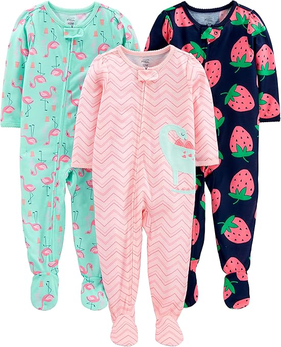 Simple Joys by Carter's Toddlers and Baby Girls' Loose-Fit Polyester Jersey Footed Pajamas, Pack of 3