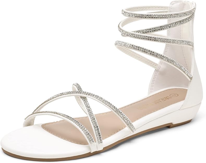 DREAM PAIRS Women's Ankle Strap Rhinestones Low Wedge Sandals