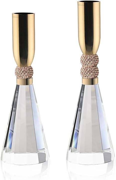 Candle Holder Crystal K9 Heavy Base for Table Decorations Christmas Party Wedding Halloween D�©cor Set of 2 (Gold)