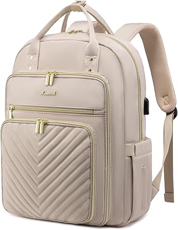 LOVEVOOK Laptop Backpack Women Teacher Backpack, 15.6 Inch Laptop Bag with USB Port, Waterproof Daypack for Work Travel Antiquewhite