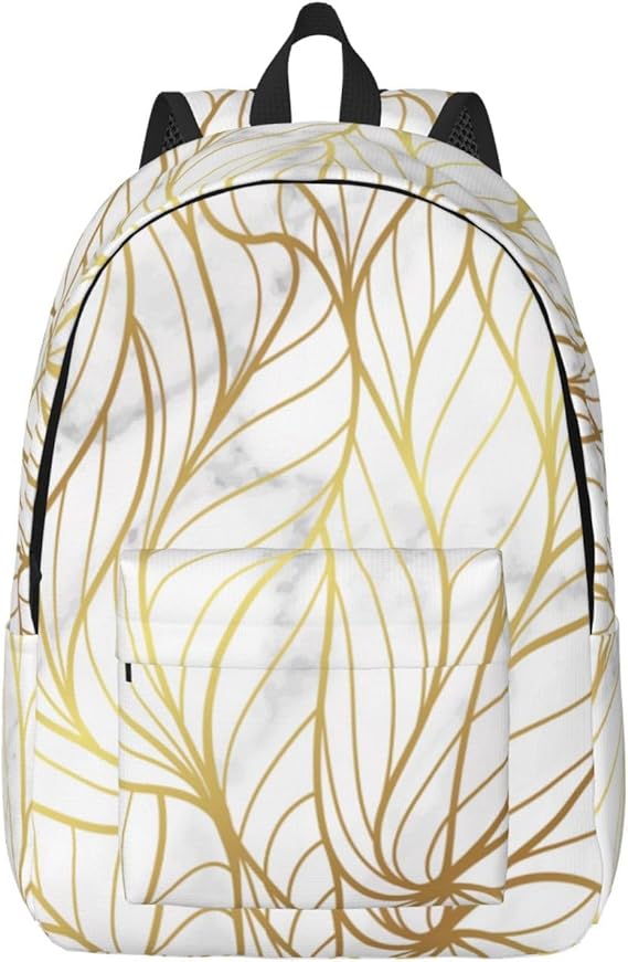 Luxury Golden Leaf Marble Large Capacity Canvas Casual Travel Backpack Lightweight Adjustable For Men And Women