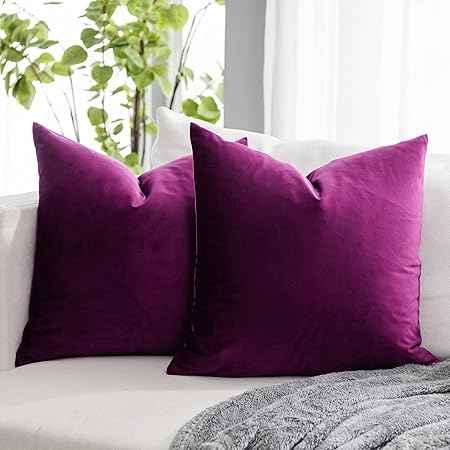 Purple Couch Velvet Throw Pillow Covers 20x20 inch Set of 2 with Zipper Decorative Luxury Soft Solid Square Cushion Covers Case for Sofa Bed Living Room Car