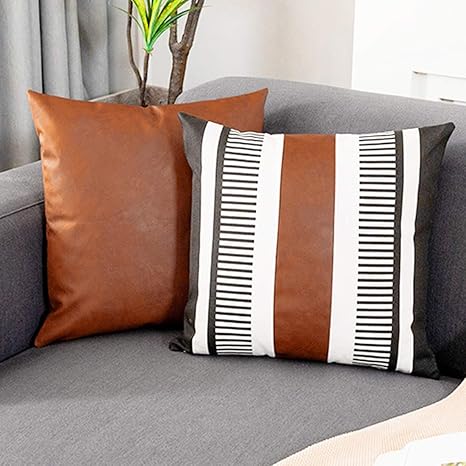 Set of 2 Farmhouse Striped Pillow Covers for Bed Couch Chair Boho Throw Pillow Covers 20x20 Modern Geometric Decorative Pillow Case Luxury Faux Leather Accent Cushion Cover