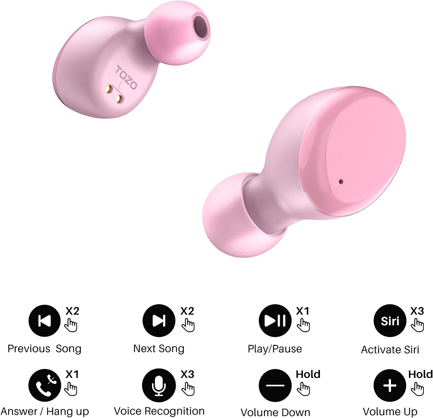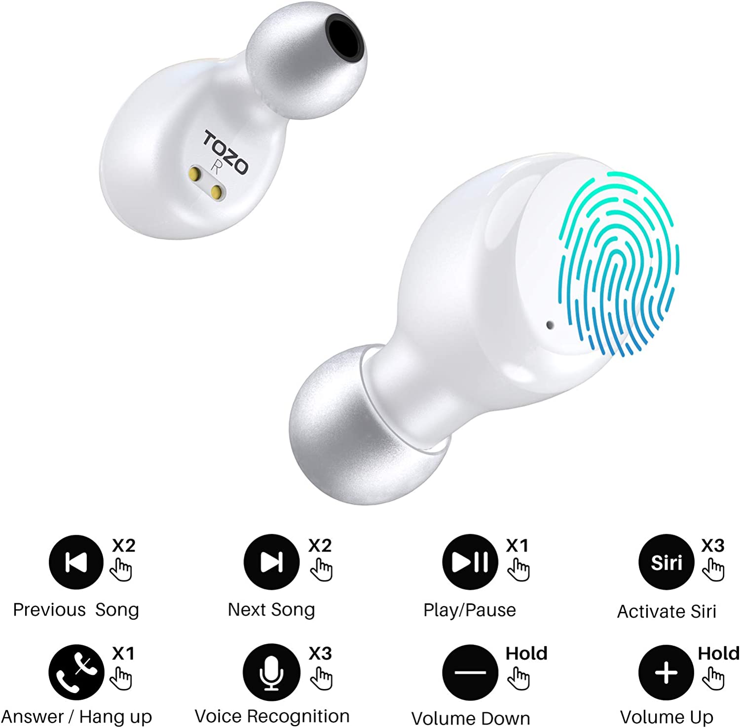 TOZO T6 True Wireless Earbuds Bluetooth 5.3 Headphones Touch Control with Wireless Charging Case IPX8 Waterproof Stereo Earphones in-Ear Built-in Mic Headset Premium Deep Bass Black (2022 Upgraded)