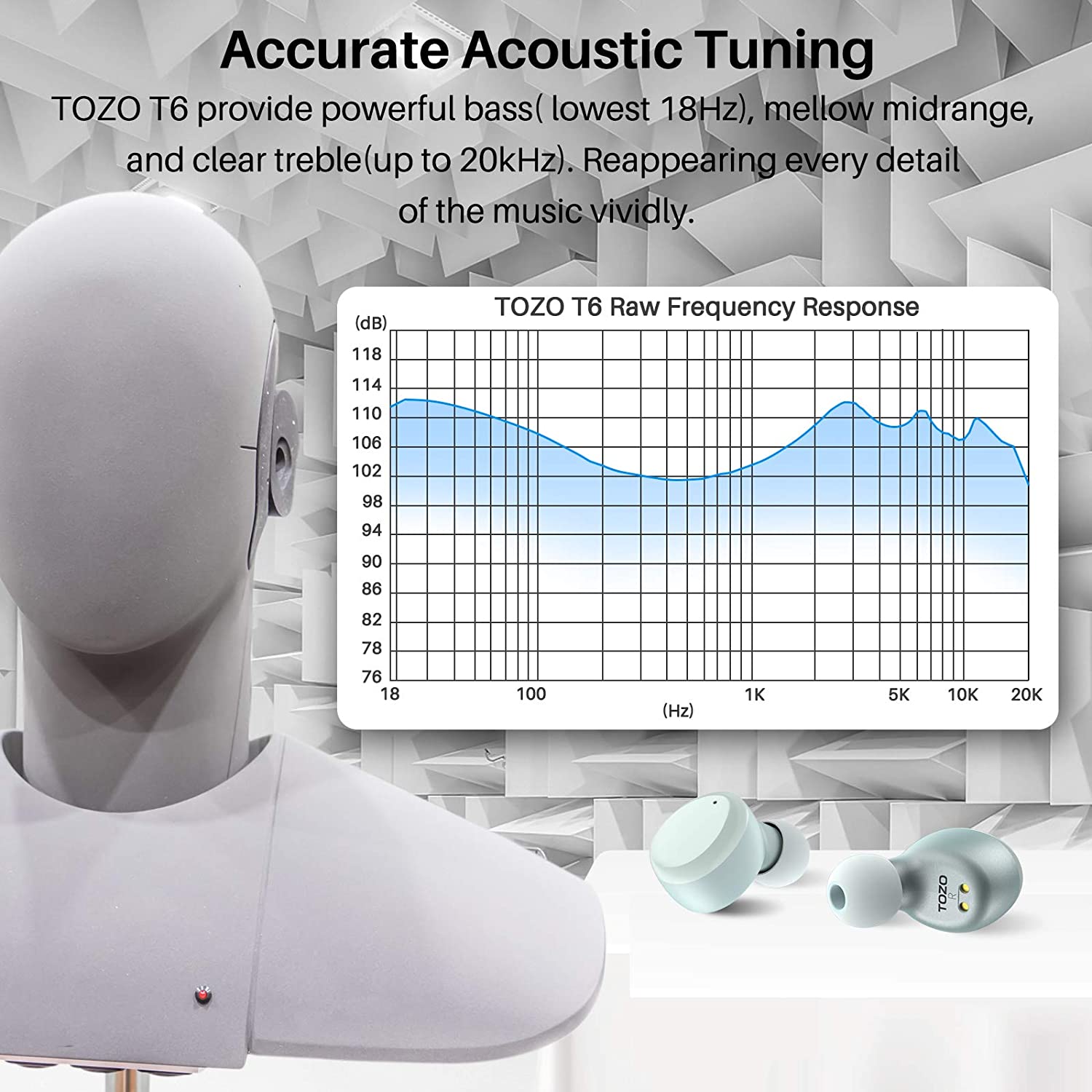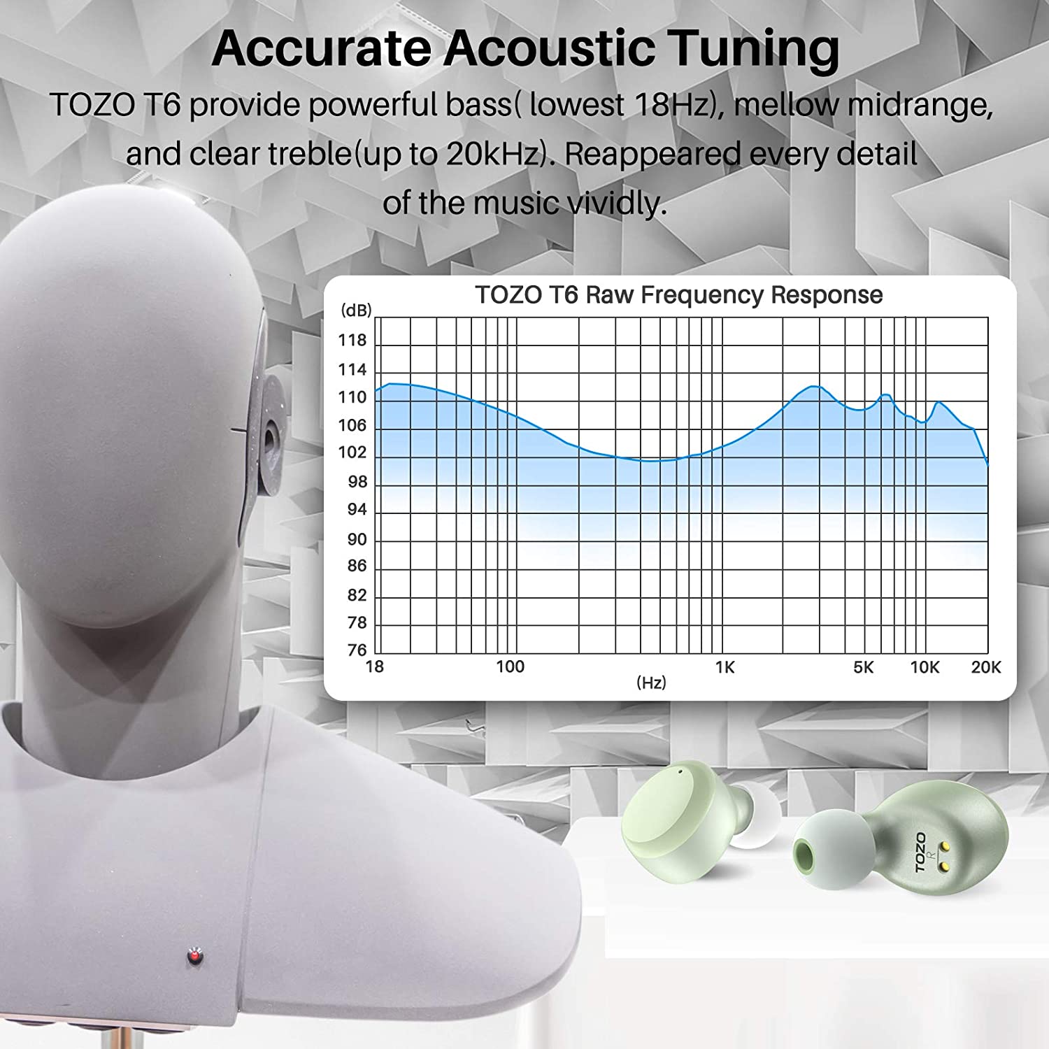 • [Bluetooth 5.3] Adopt the advanced Bluetooth 5.3 technology. TOZO T6 support HSP, HFP, A2DP, AVRCP, which greatly improve the transmission speed and providing you with a low-latency listening experience.