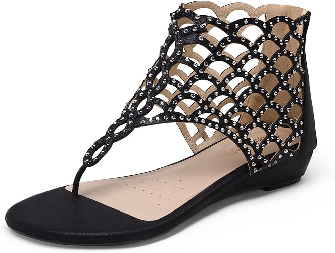 DREAM PAIRS Women's Jewel Rhinestones Design Ankle High Flat Sandals