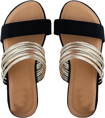 Verdusa Women's Metallic Strappy Flat Sandals Summer Slide Sandals Casual Shoes