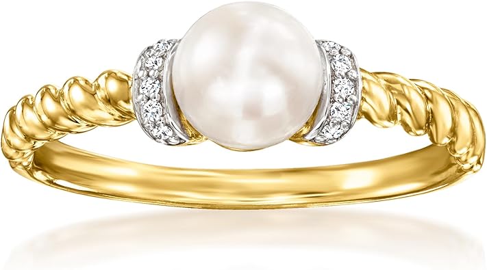 Ross-Simons 5.5-6mm Cultured Pearl Ring With Diamond Accents in 18kt Gold Over Sterling