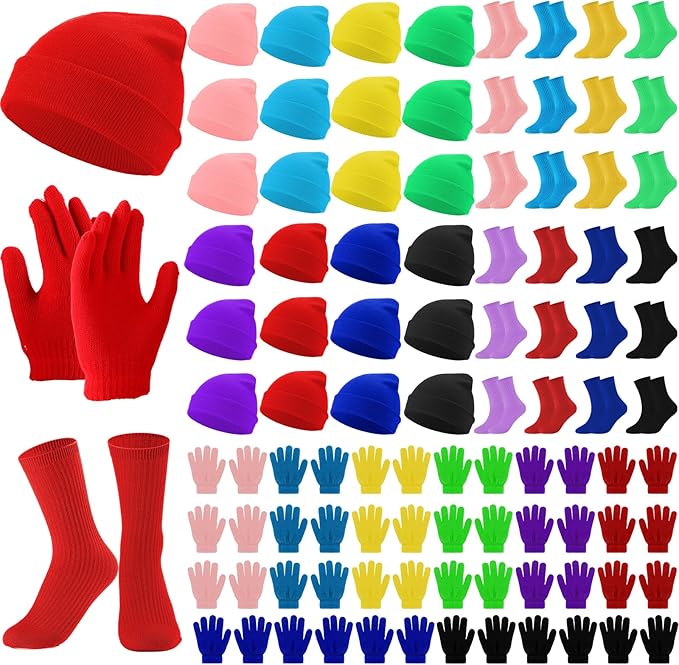 Liitrsh 24 Set Kids Winter Knitted Beanie Hats Gloves and Socks Bulk Beanie Hats Gloves Socks for Boys Girls Children Gift