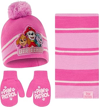 Nickelodeon girls Toddler Winter Hat, Scarf & Mittens Set 2-4 Or Paw Patrol Marshall Hat, Scarves & Kids Gloves Sets 4-7