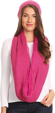 Sakkas Balencia Cool Girl Long Wide Soft Fur Lined Infinity Scarf Beanie Hat Set