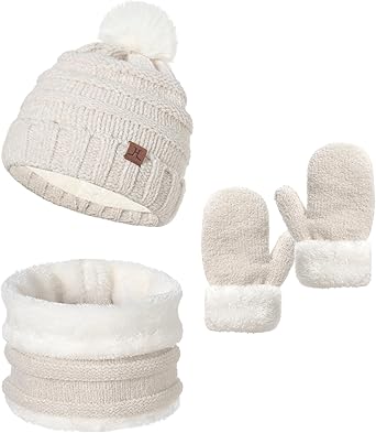 Toddler Hat Scarf And Glove Set Boy Girl Winter Pom Beanie Hat Neck Warmer Tube Mitten Gloves Ages 2-4 2t-4t 3-5 Fleece Lined