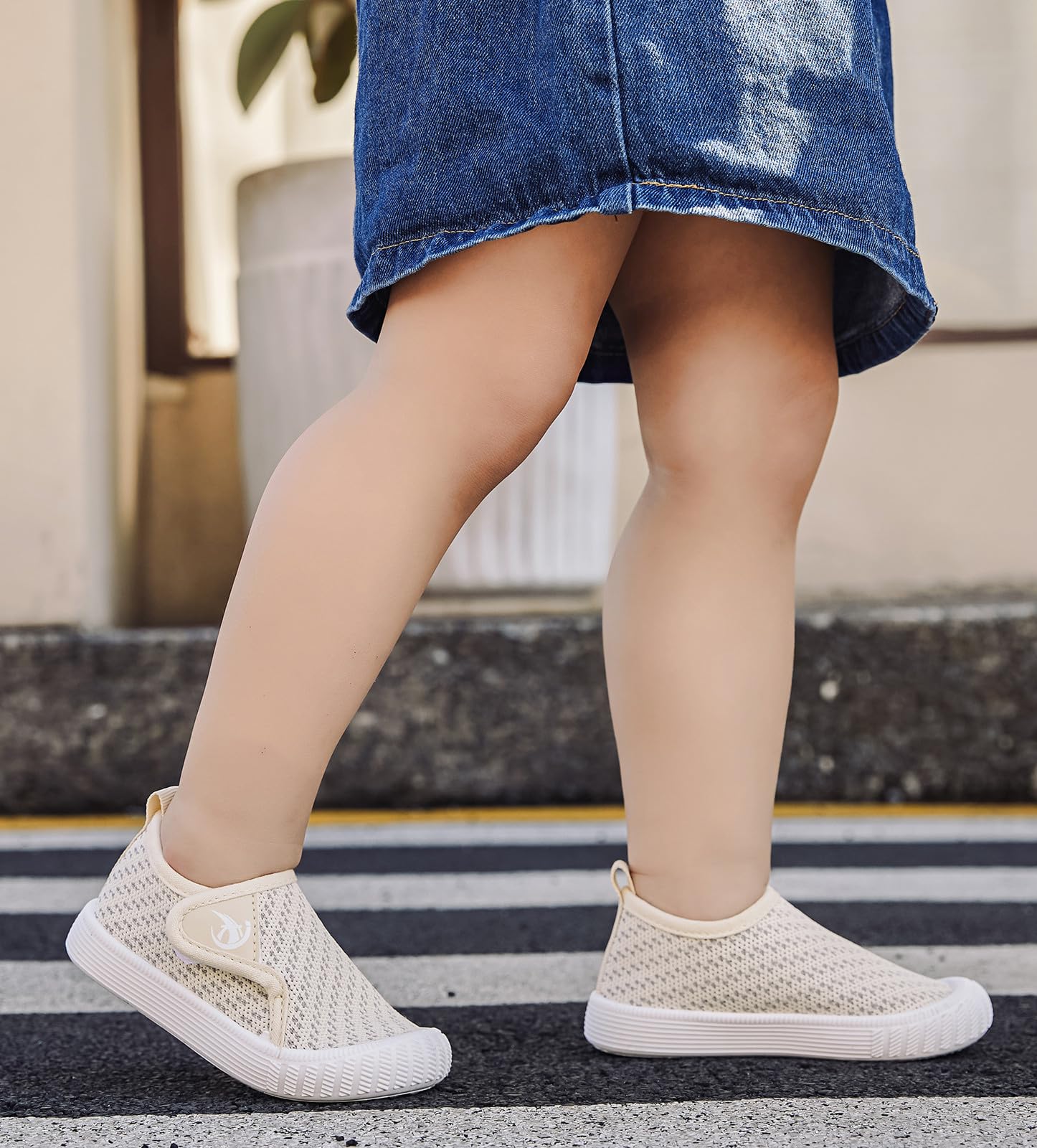 DADAWEN Boys Girls Toddler Sneakers Kids Lightweight Walking Shoes Mesh Breathable Tennis Shoes for Toddler/Little Kids Beige US Size 6.5 M Toddler