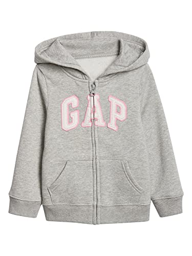GAP Baby Girls Logo Zip Hoodie Sweatshirt, Heather Grey, 0-3 Months US