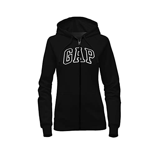 GAP Womens Fleece Arch Logo Full Zip Hoodie (Black, Large)