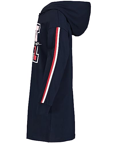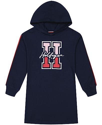 Tommy Hilfiger Girls' Hooded Sweatshirt Dress, Long Sleeve Fleece Hoodie with Fun Prints & Designs, Navy Blazer 07g, 12-14