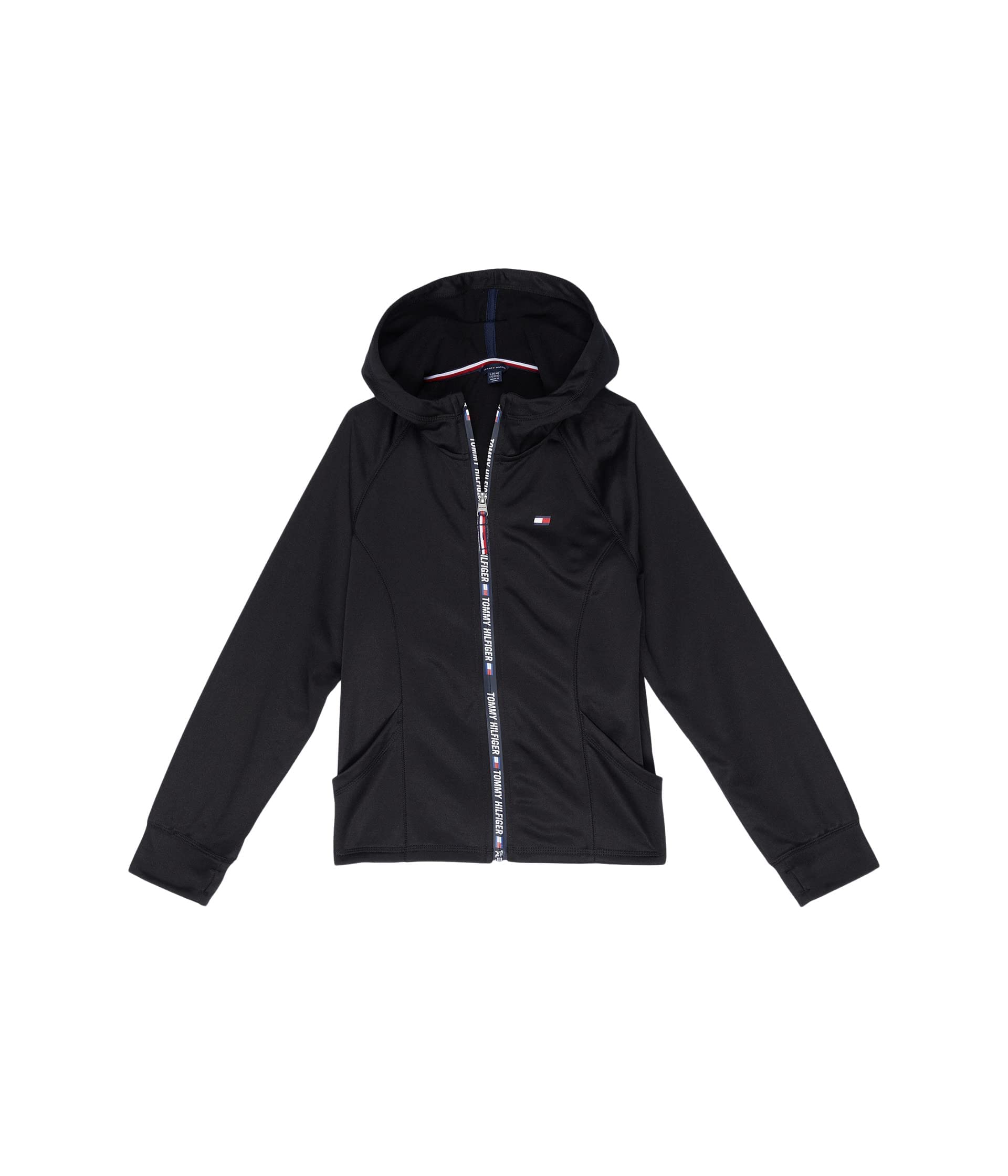 Tommy Hilfiger Girls' Sport Full Zipper Hoodie, Fleece With Functional Front Pockets, Deep Black, 8-10