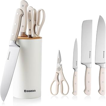 GOODA Knife Set with Block, 4 Pieces High Carbon Stainless Steel Kitchen Knife set Dishwasher Safe with Sharp Blade Forged Triple Rivet Ergonomic Handle, White