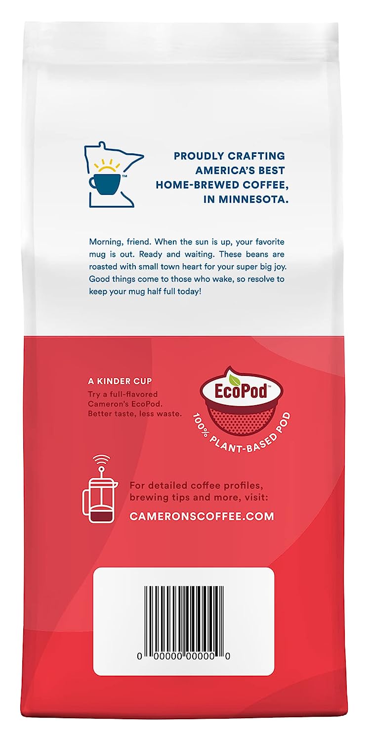 We’re dedicated to crafting the perfect coffee for you to brew at home—made for you, not baristas. No fluff, no lines, just full-flavored specialty coffee brewed at home. Our vast selection of Whole Bean and Ground coffees will tantalize your taste buds and wake you up for the new day. From Organic blends to flavored blends you’ve only dreamt of, Cameron’s Coffee is committed to bringing the perfect cup of coffee straight to your kitchen. Since 1978, Cameron's has been a name synonymous with specialty coffee rich in flavor, yet subtle and complex. We purchase our specialty grade, Arabica coffee beans from around the globe and "small batch" roast them to perfection in one of the finest roasteries in the country. The quality and consistency of our coffee is sure to please even the most sophisticated coffee drinker. Taste the flavor, enjoy the moment and share in a cup of coffee so full of character we're proud to call it Cameron's.