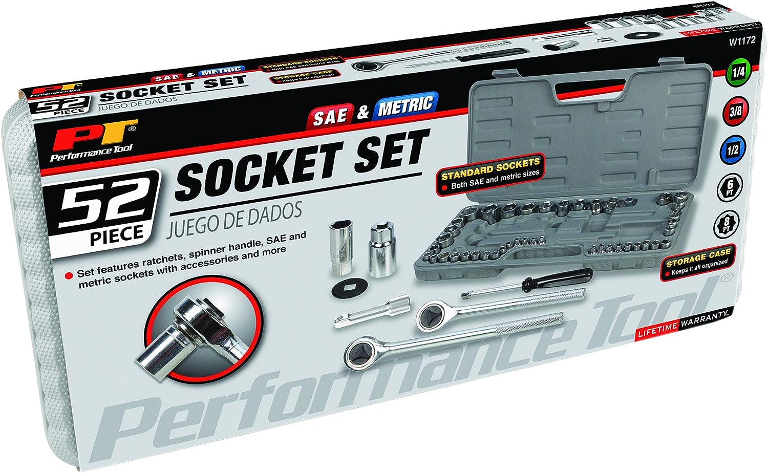Performance Tool W1173 SAE/Metric 40-Piece SAE and Metric Socket Set, 1/4-Inch & 3/8-Inch Drive
