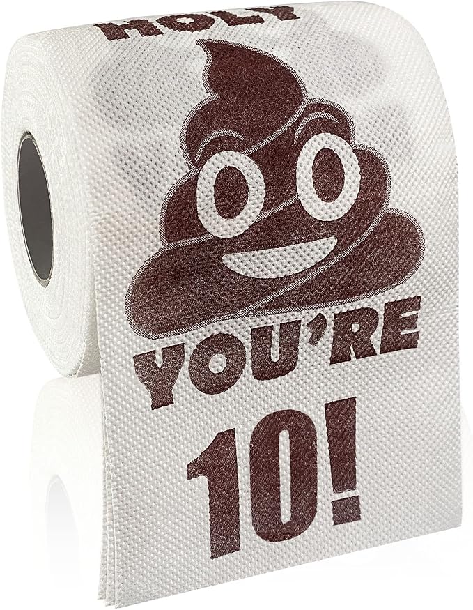 Happy 10th Birthday Gifts, 3-Ply Funny Toilet Paper Roll, Holy Poop You're 10 Printed Toilet Paper Gag Gift, Pranks & Surprises Bathroom Decor for Boys Son and Girls, Cheers to 10 Bday Party Supplies