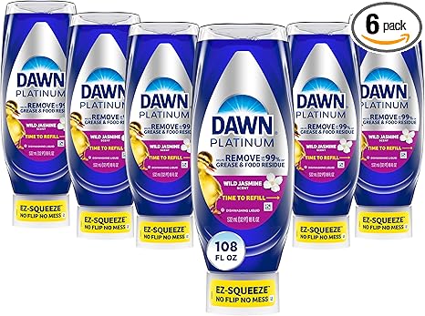 Dawn Platinum EZ-Squeeze Dish Soap Liquid, Dishwashing Liquid, Grease Removal, Upside Down Bottle, Wild Jasmine, 6x18 Fl Oz Bundle